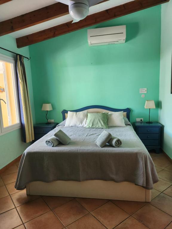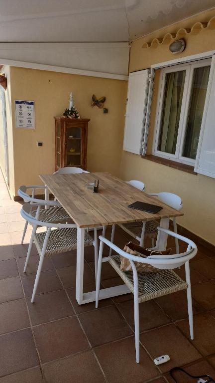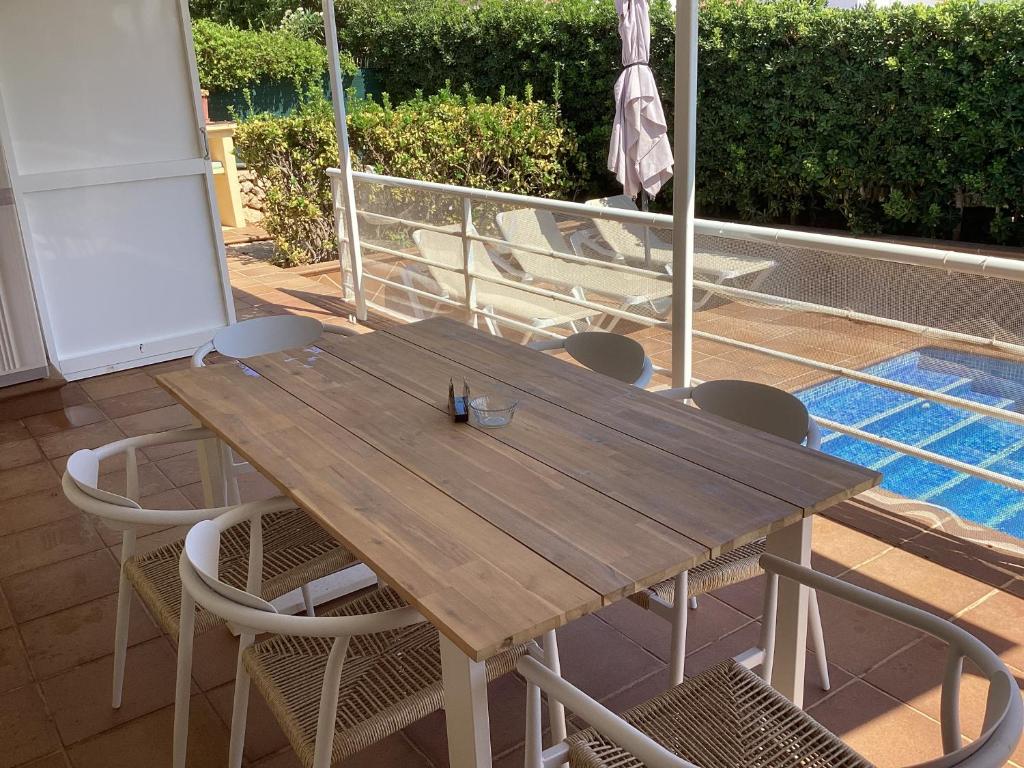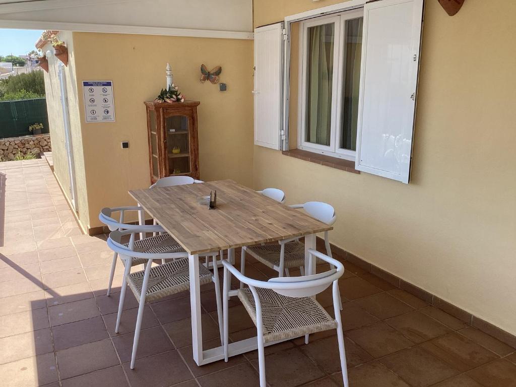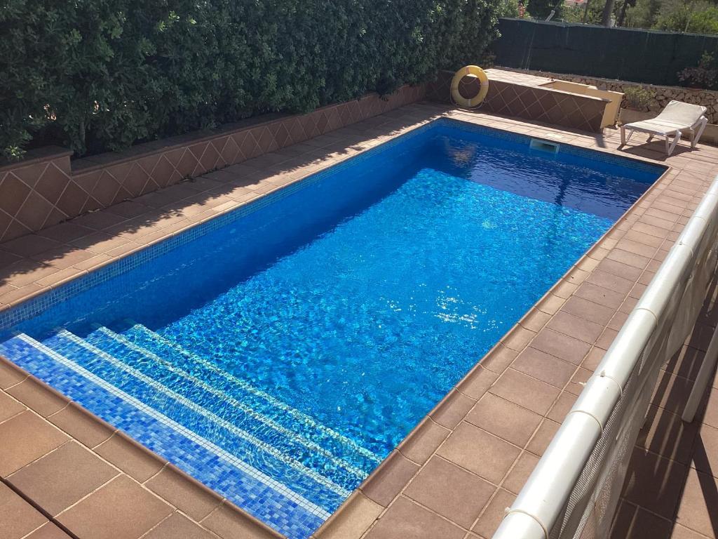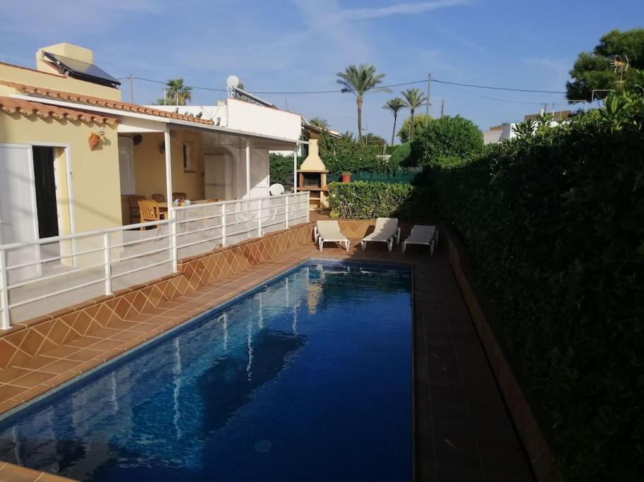 Situada a 300 metros de la playa, la villa cuenta con piscina privada con tumbonas, ducha exterior, barbacoa y comedor exterior. La villa estĂ¡ rodeada por una zona solada que le da privacidad. Tiene una terraza en el techo desde la que se puede ver el mar. El aparcamiento es gratuito en la calle. Tiene 110 metros cuadrados distribuidos en comedor, salĂ³n, cocina totalmente equipada, tres habitaciones, la principal con aseo y vestidor incorporado y una de ellas es individual y un baño completo con ducha. Todas las habitaciones tienen aire acondicionado. Tiene Wifi por fibra.